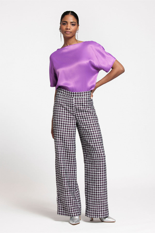 Alex High Waist Tweed Tweed Tweed Trousers - Off White/Purple