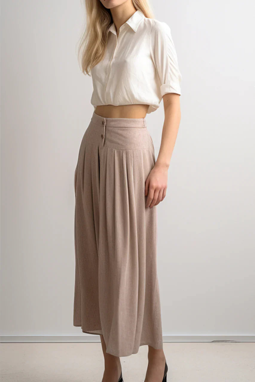 Ren 3-Button Tweed Midi Skirt